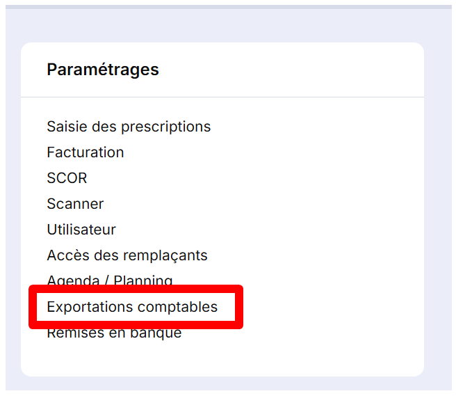 Pour faciliter la saisie de vos écritures dans votre logiciel préféré de comptabilité, Topaze vous propose une option d'exportations comptables. Ouvrez le menu Réglages et cliquez sur le lien Exportations comptables.