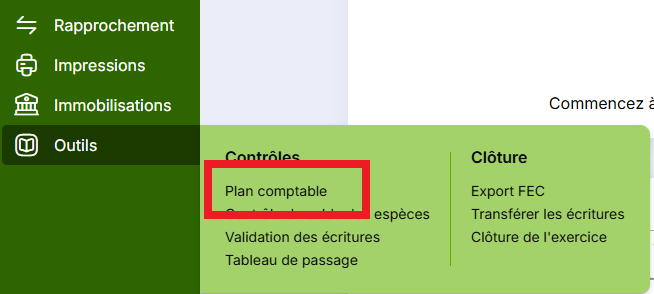 Pour modifier le numéro d’un compte, rendez-vous dans le Plan comptable qui se trouve dans le menu Outils. Sélectionnez ensuite le compte et faites Modifier.
